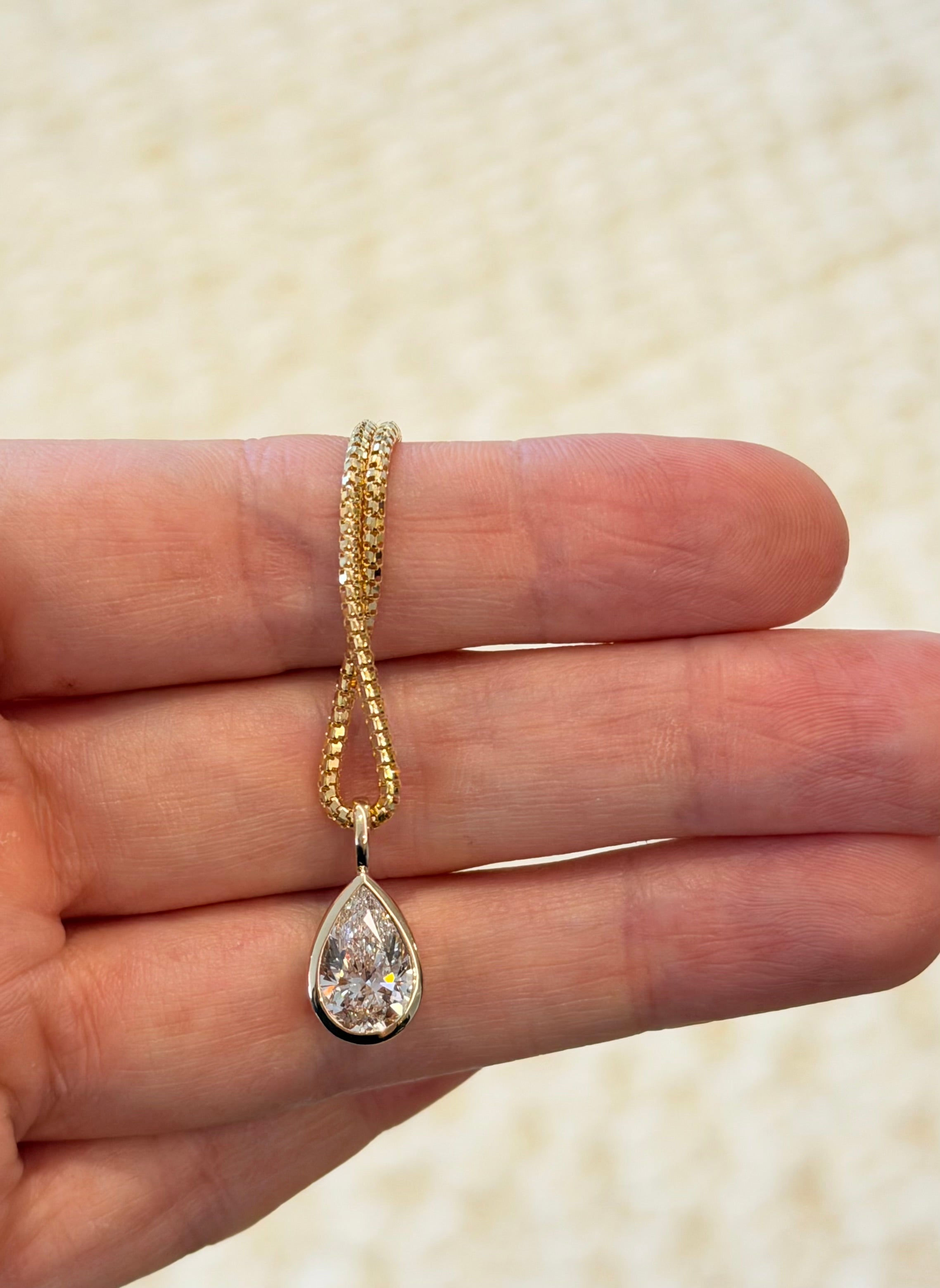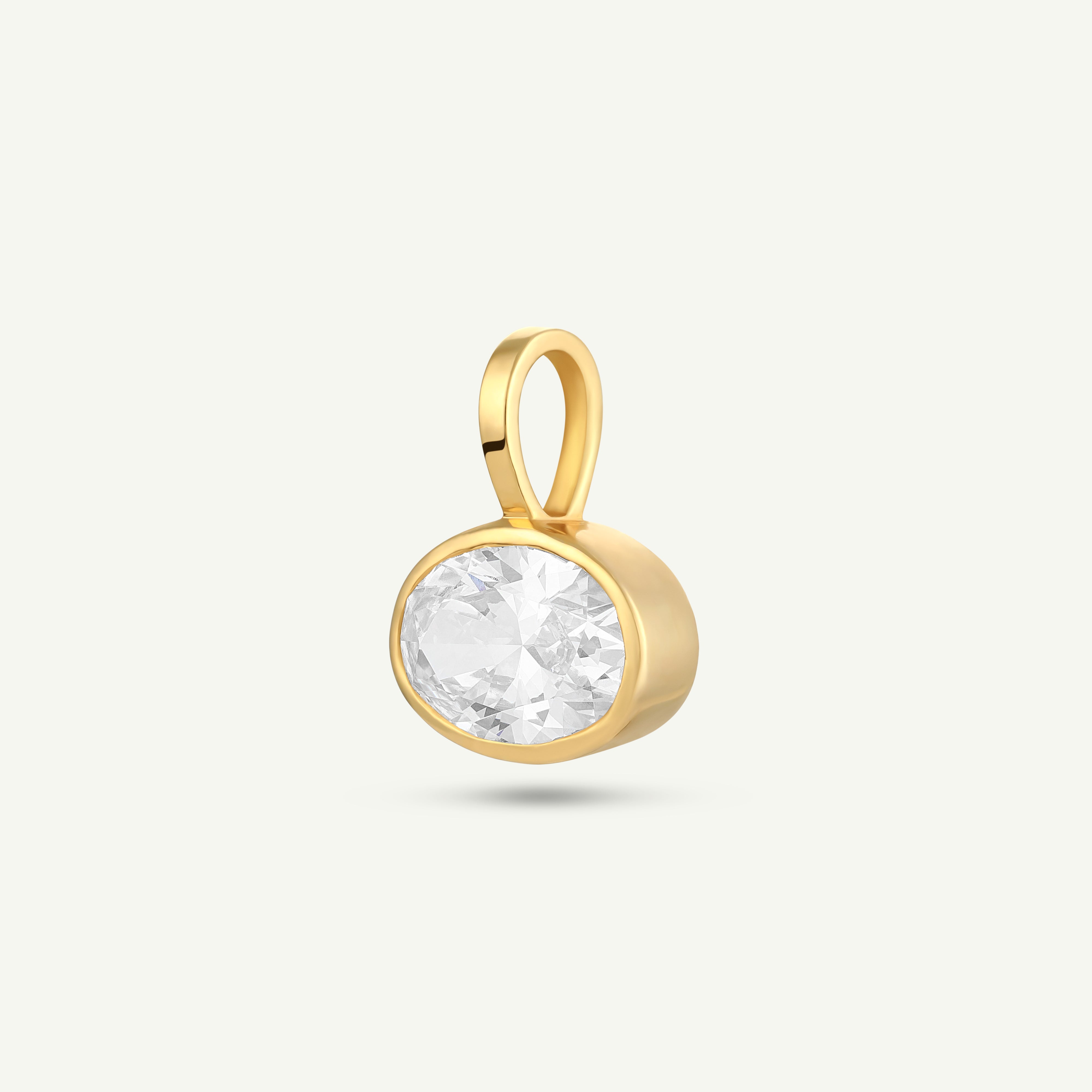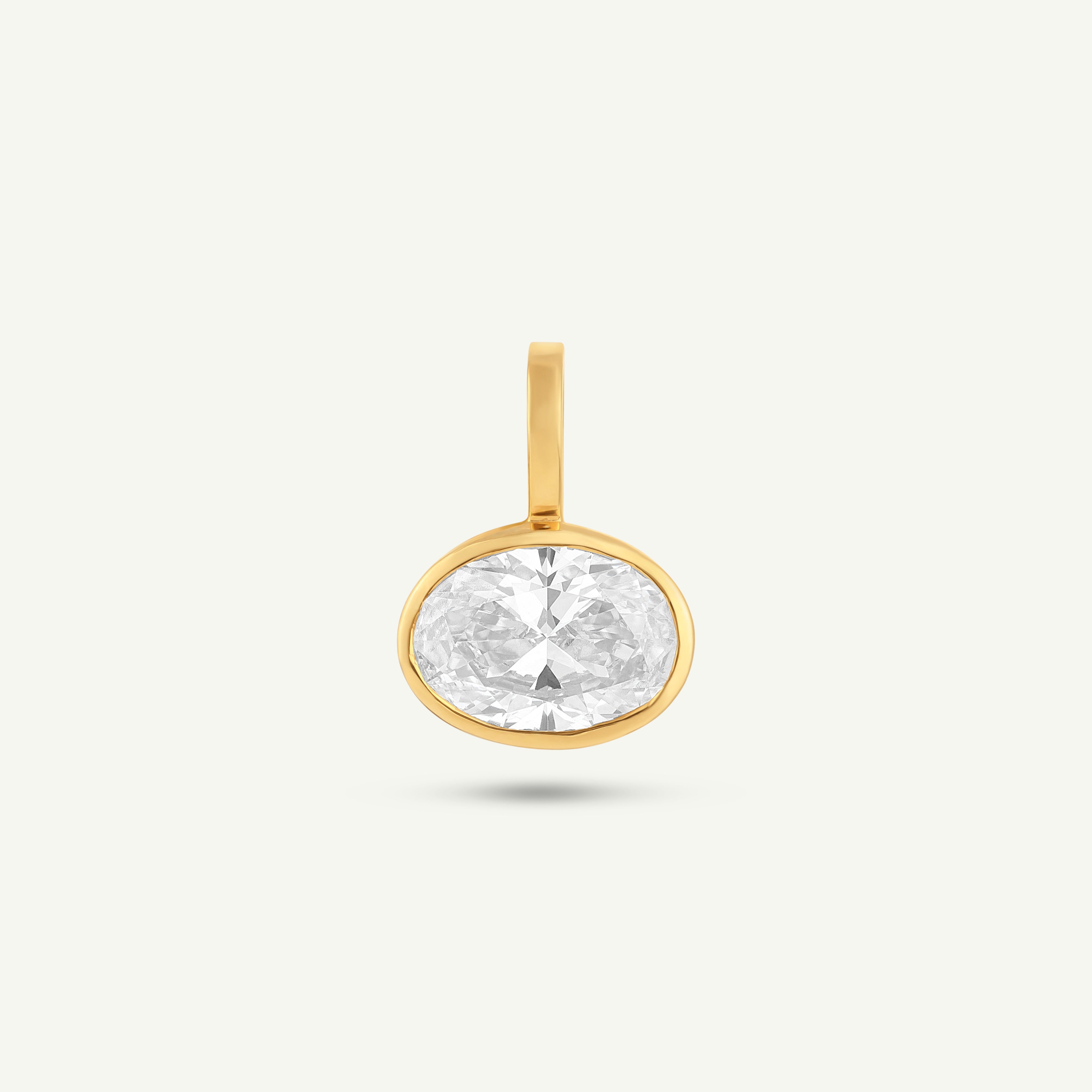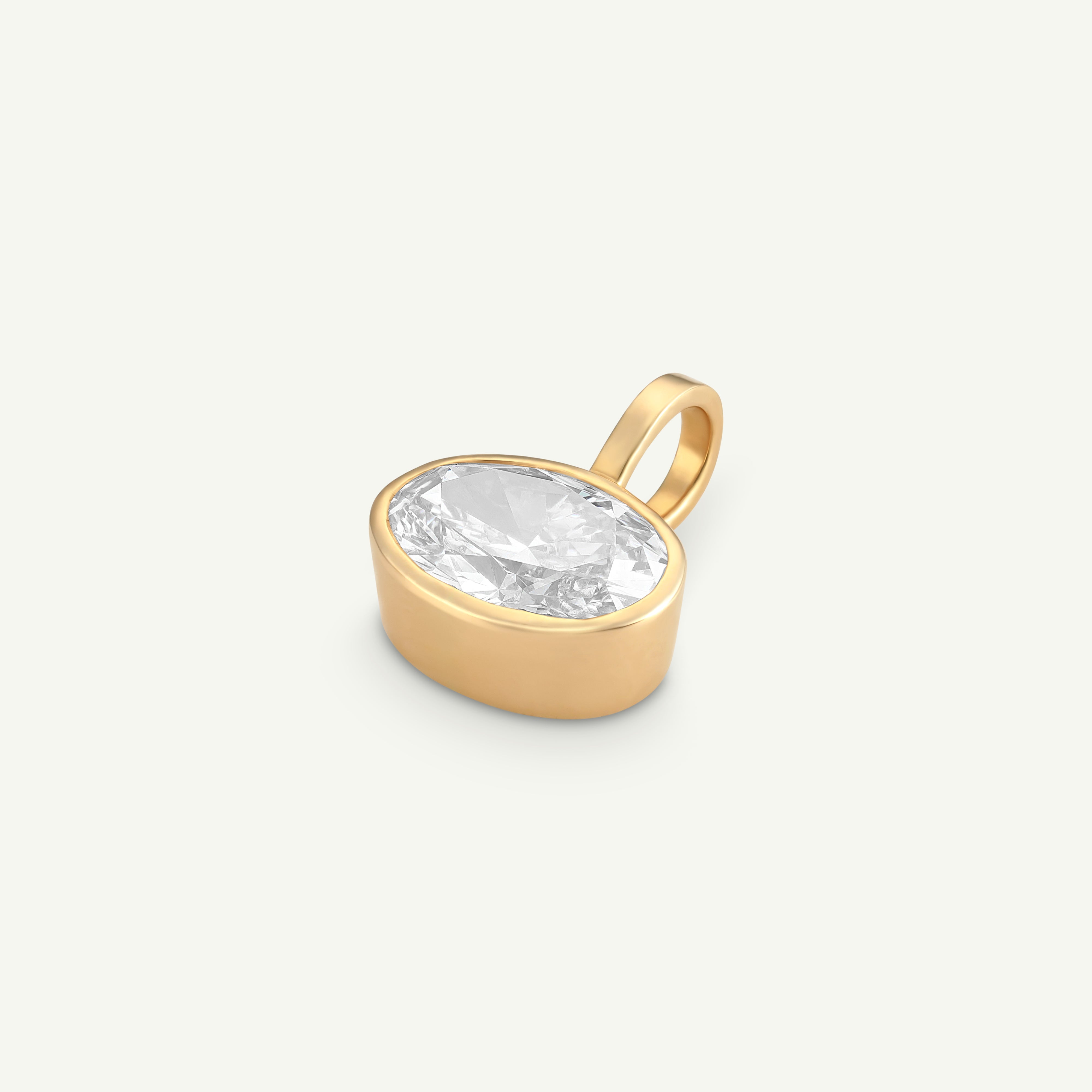 This 18k gold bezel-set charm frames your diamond in a smooth, sculptural setting, letting its light speak with subtle brilliance. Choose from 2- or 3-carat lab-grown diamonds available in pear, heart, and oval (positioned east-west for a fresh, contemporary feel) shapes.